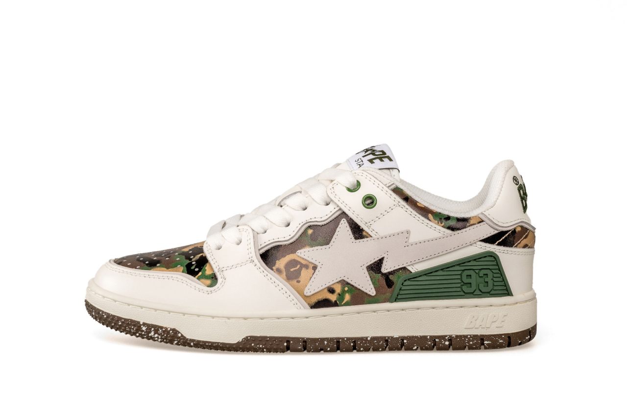 The visual highlight is the striking Bape Sta on the side area, which is one of the best-known design elements of the Japanese streetwear label. The low-top sneaker is comfortable to wear thanks to a perforated toe box, classic laces and the cushioning midsole area.